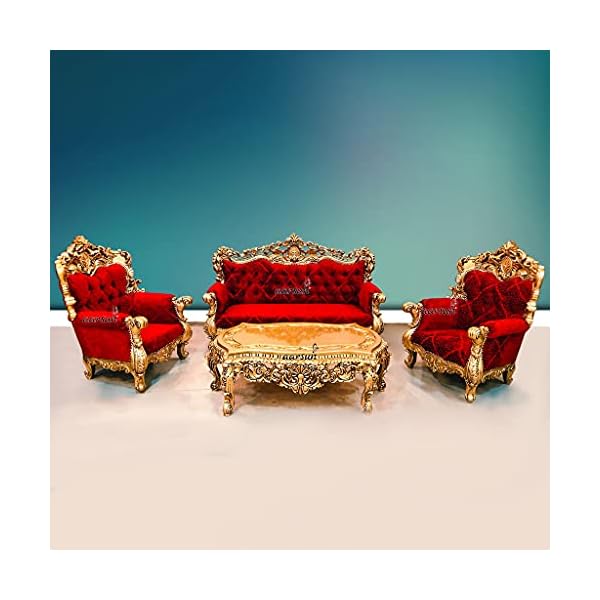 Aarsun Royal Wooden Sofa Set in Teak Wood with Gold Paint | Wooden 8 Seater Sofa Set with Center Table/Living Room…