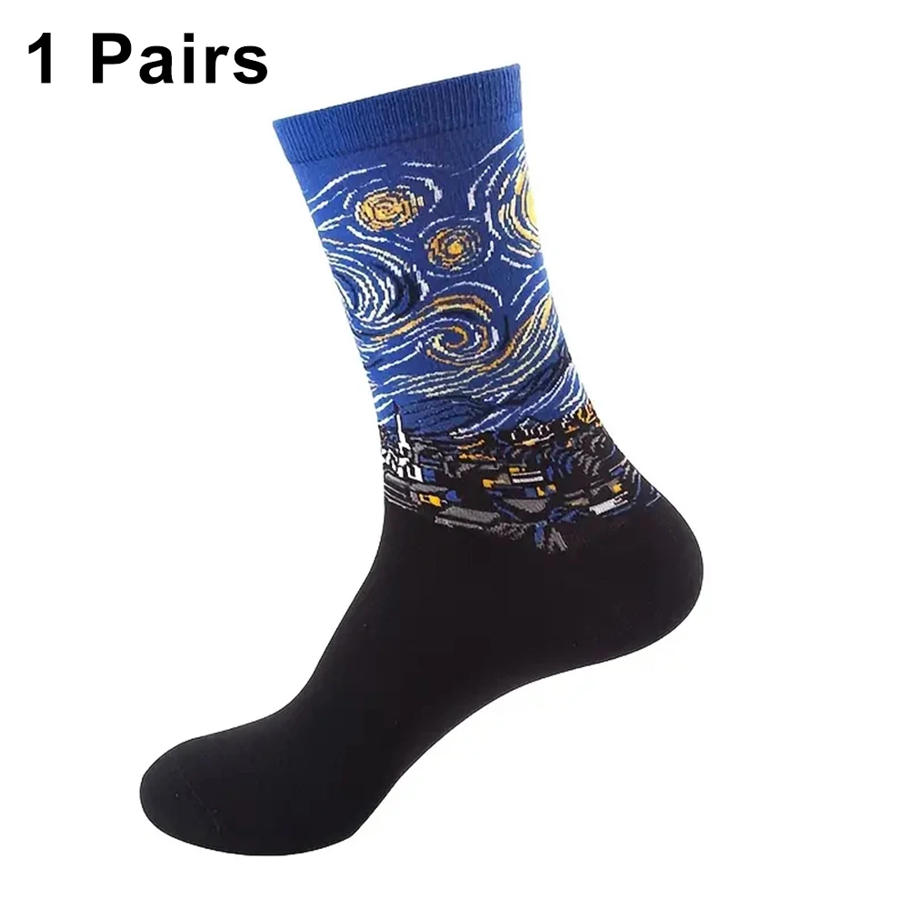 1 Pair Women Retro Abstract Oil Painting Art Sock Shout Modern Van Gogh Starry Night Happy Oil Painting Comfort Skateboard Socks
